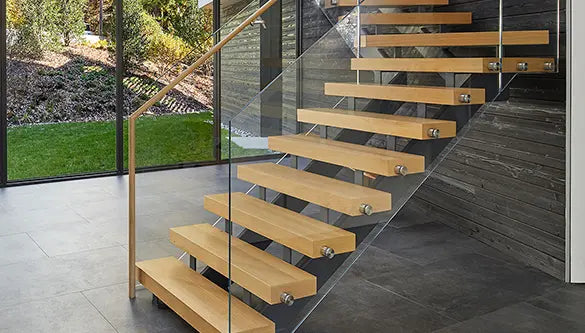Achieve a modern aesthetic for your glass stair railing while effortlessly providing support to glass panels using our single and double glass railing standoffs.